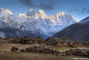 I fell in love with the Khumbu region and towering peaks with their hanging glaciers. We also found the site where a picture that captivated our imaginations years before at the Park City Arts Festival had been taken. It moved us both tremendously.